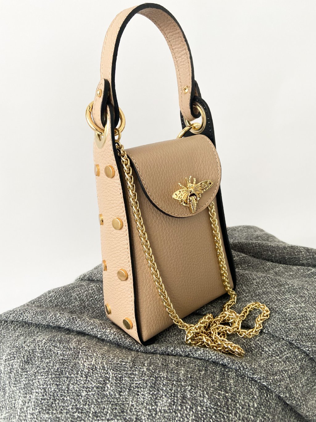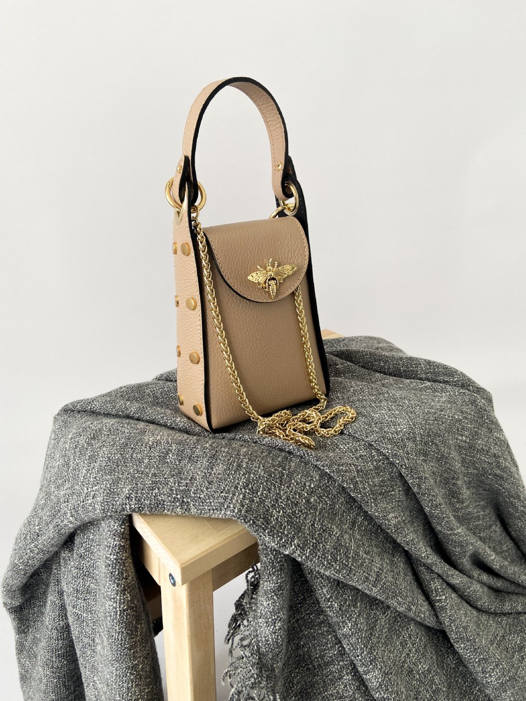 Béžová kabelka MOLLY se zlatými aplikacemi - do ruky i přes rameno, včetně popruhu