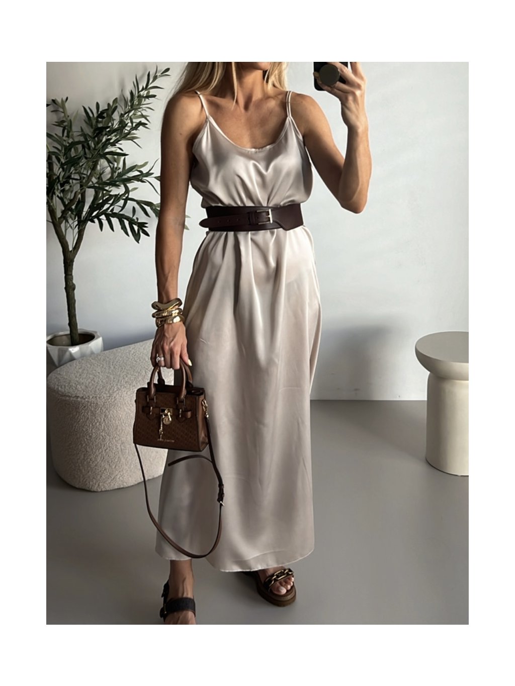 Pohodlné letní saténové šaty KAI v béžové barvě, na ramínka.