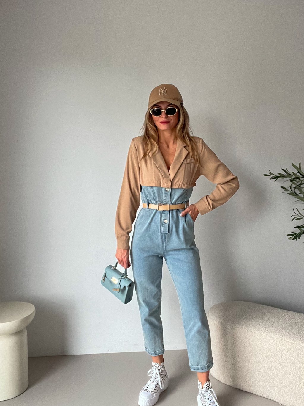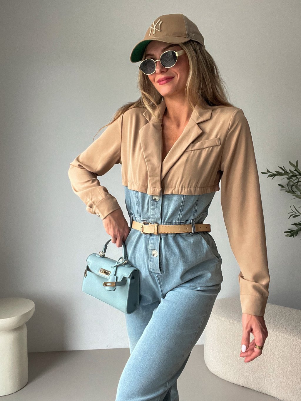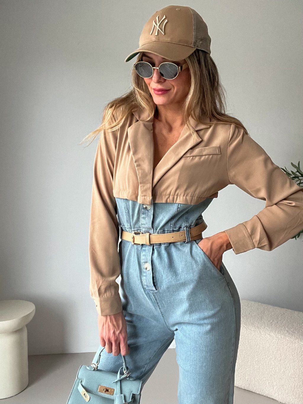 Originální džínový overal BAILEY kombinuje pohodlí s elegancí. Má dlouhý rukáv, praktické boční kapsy a zapínání na knoflíky. Vrchní část je z jemného béžového košilového materiálu s klopou, která celému kousku dodává sofistikovaný nádech. Skvělá volba, když chceš vypadat stylově, aniž bys musela obětovat pohodlí.
