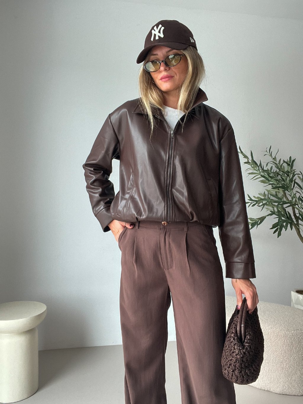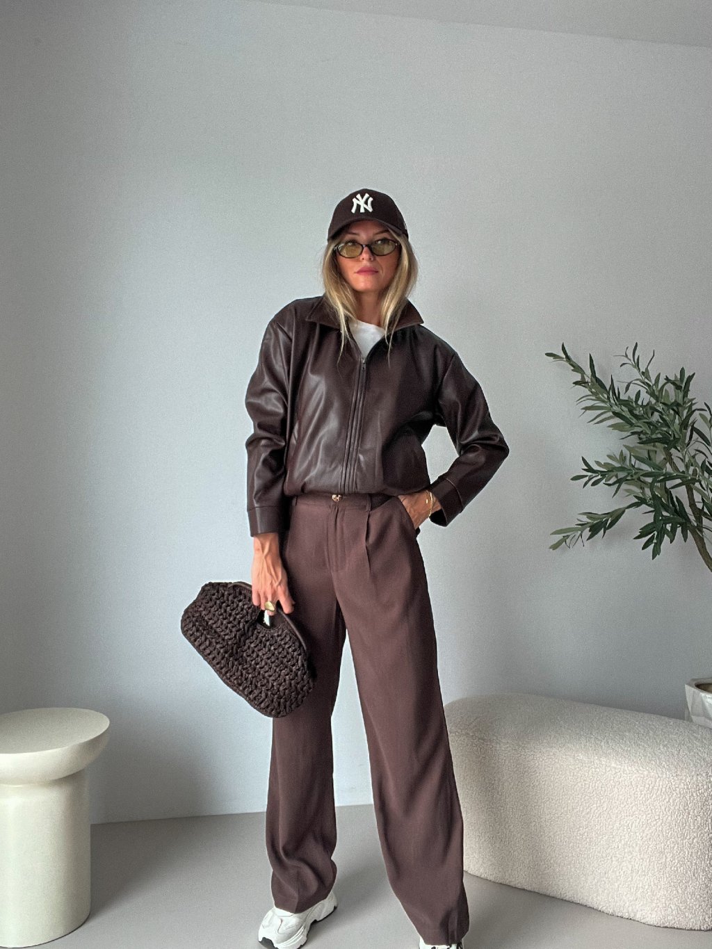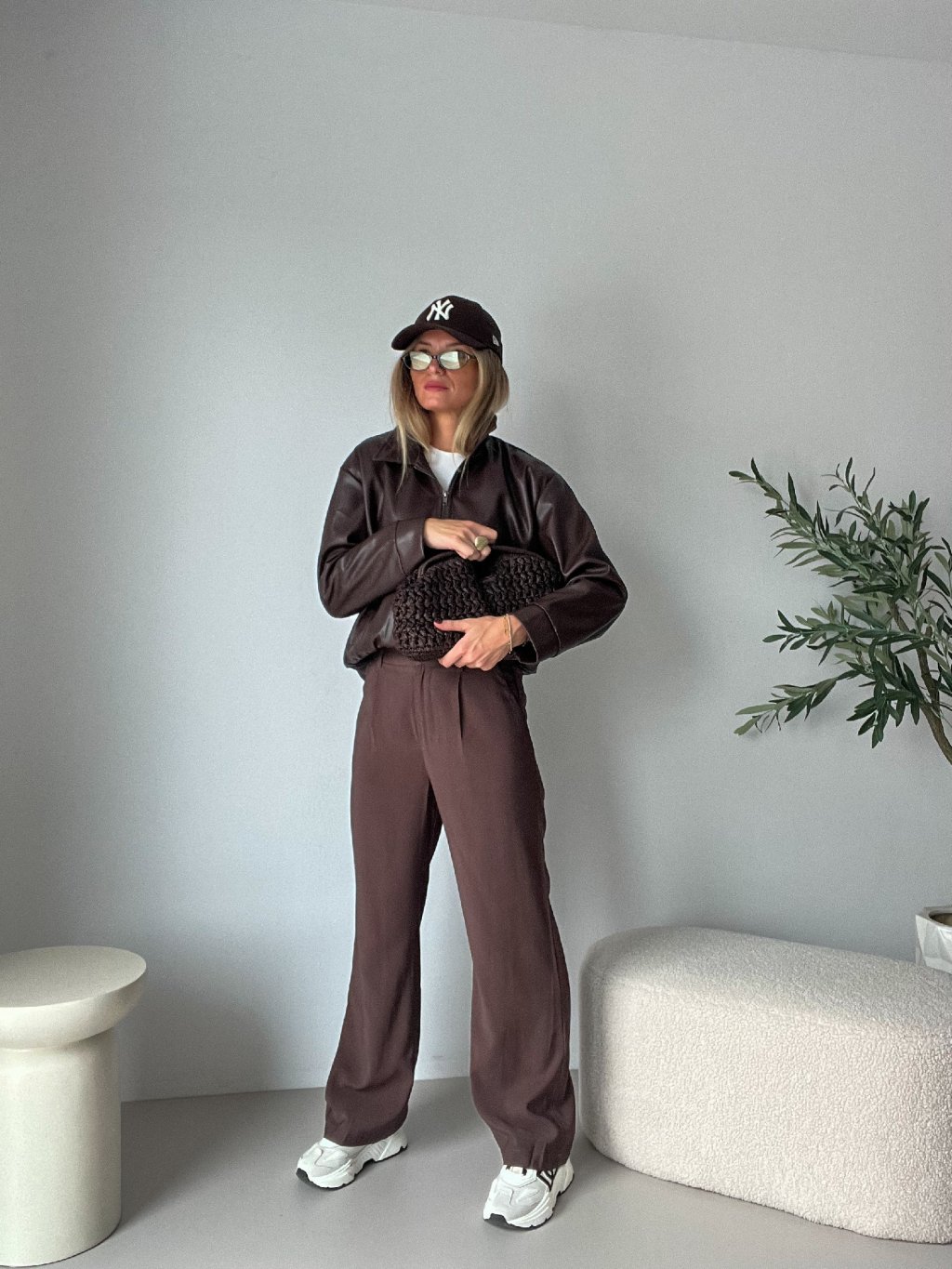 Elegantní kalhoty MAROON v krásné, trendy hnědé barvě, lehký materiál, volný střih, široké nohavice. Kalhoty jsou na zapínání, mají boční kapsy, v zadní části pasu mají gumový patent. Díky své elegantní hnědé barvě je můžeš nosit jak k vysokým podpatkům, tak k bílým teniskám a vždy budou vypadat skvěle! Stačí doplnit jednoduchým basic tričkem, světlým topem, či bílou košilí a outfit je hotový!