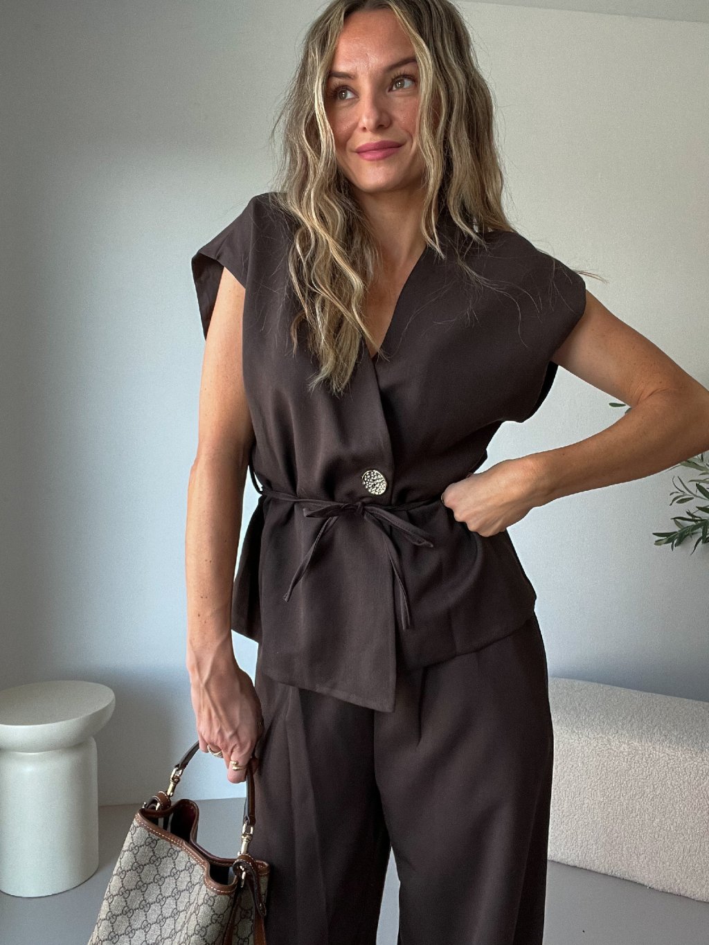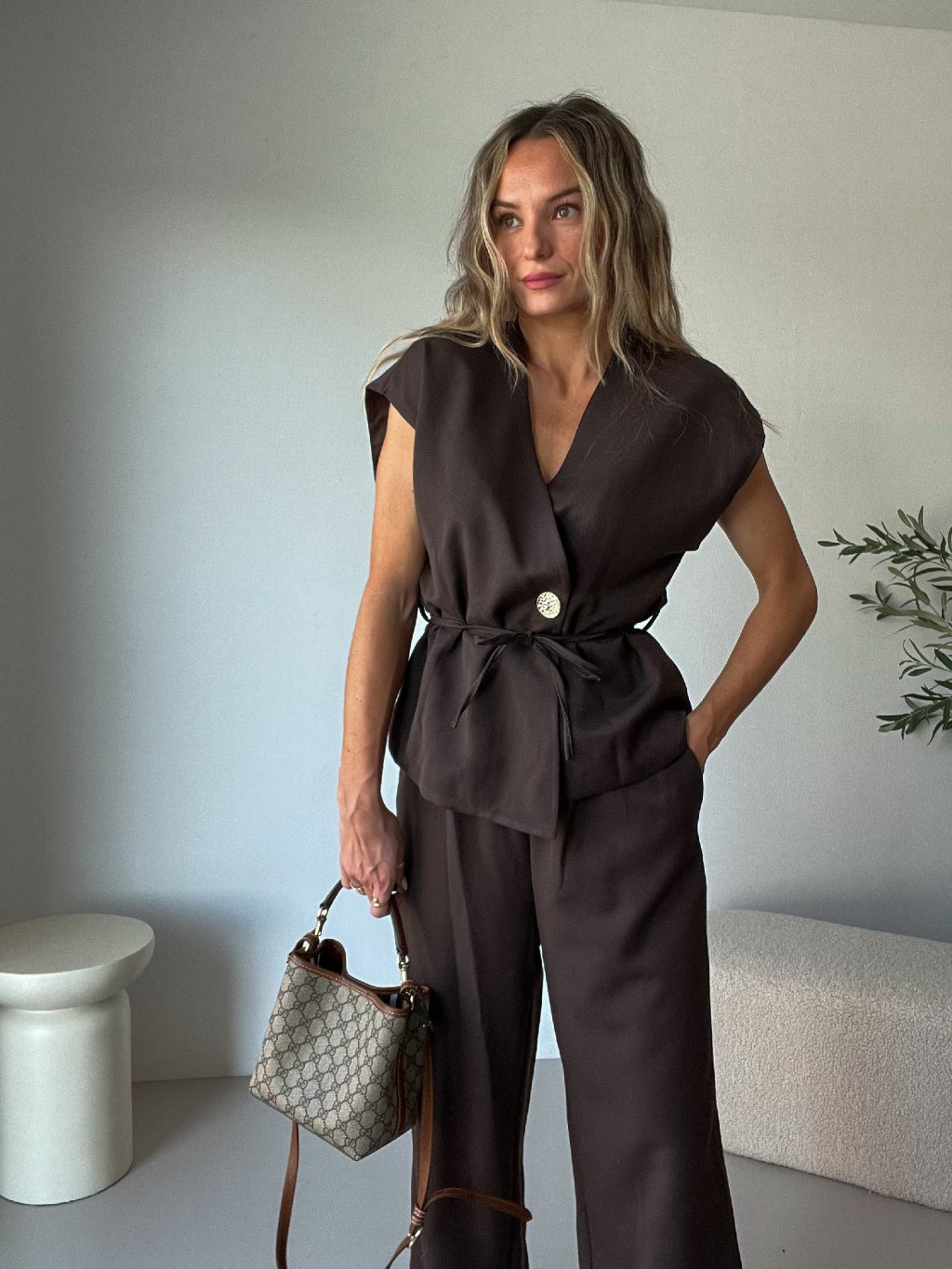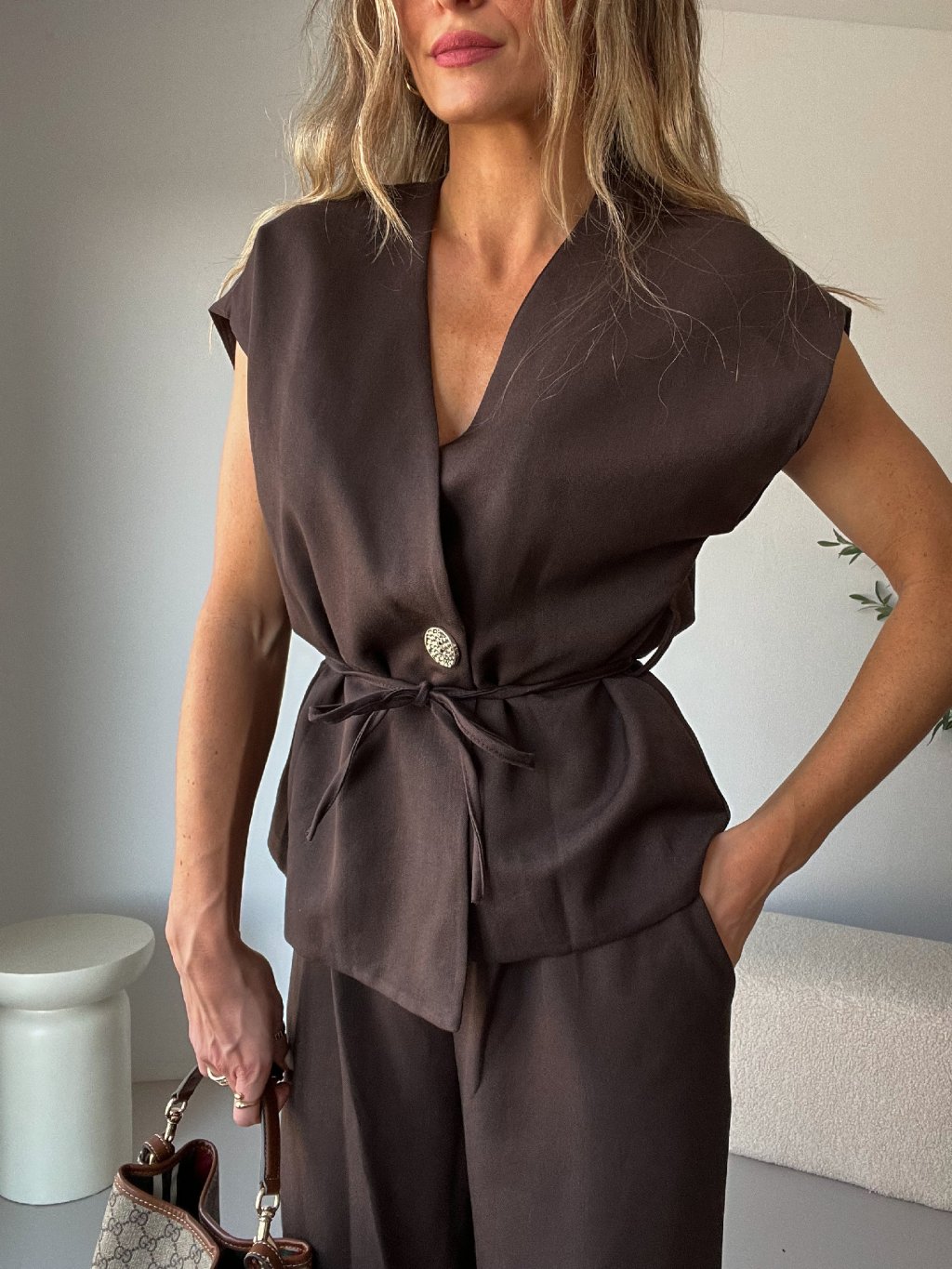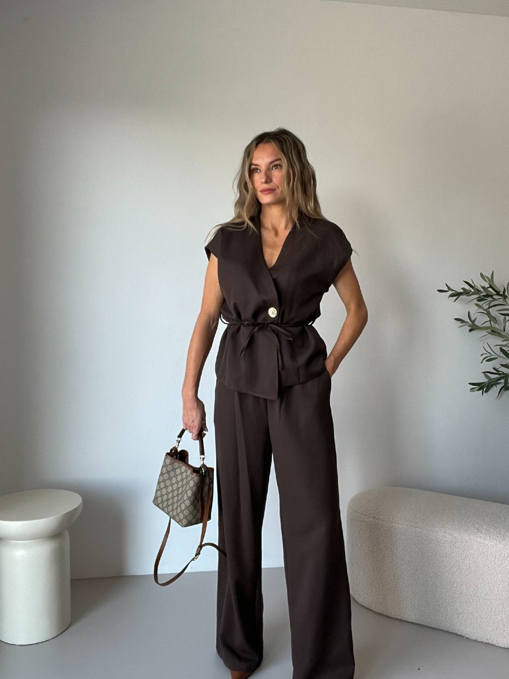 Elegantní komplet s vestou VERZO v hnědé barvě je nadčasový a sofistikovaný kousek, který kombinuje styl s pohodlím. ✨