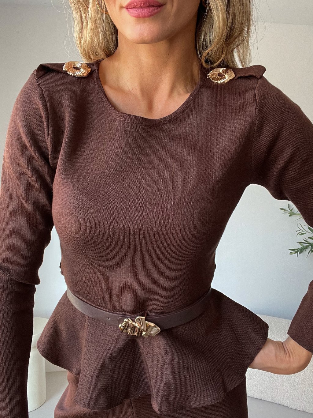 Elegantní pletený komplet TENERO v hnědé barvě je důkazem, že pohodlí a elegance jdou ruku v ruce. 🤎