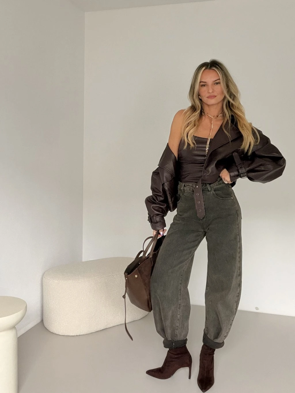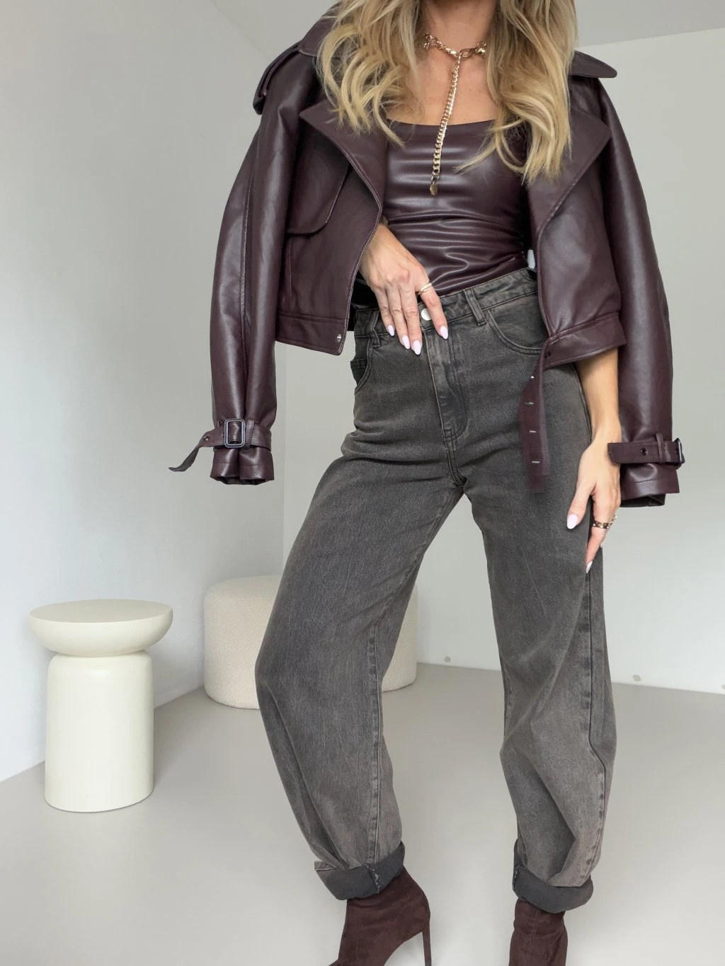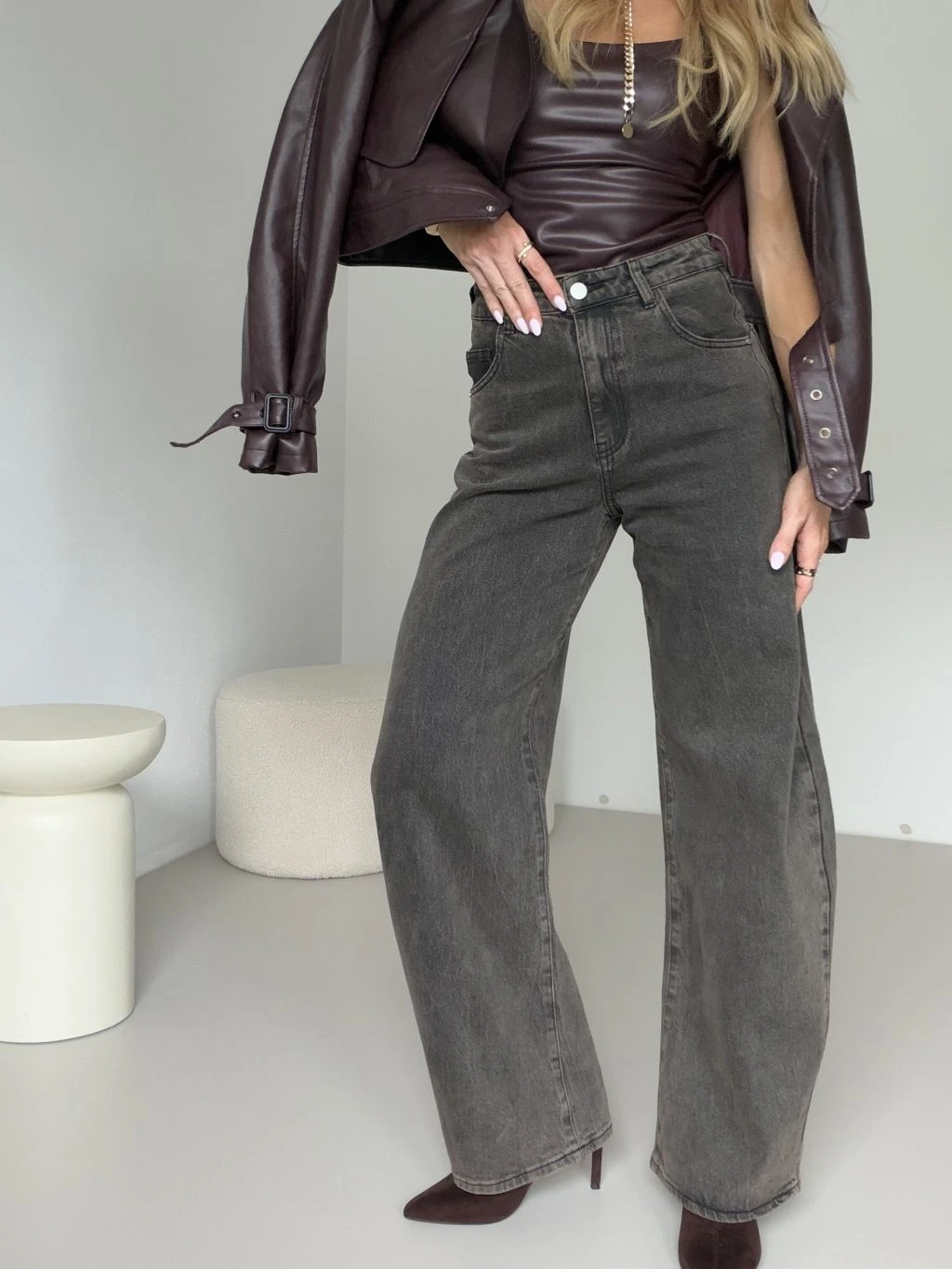 BArrel džíny RAFFAEL v trendy šedohnědé barvě jsou ideálním kouskem pro všechny, kdo milují pohodlí a zároveň chtějí vypadat stylově. Mají široké nohavice balonového střihu, které dodávají outfitu ležérní vibe. Díky bočním i zadním kapsám jsou nejen stylové, ale i praktické. Pevný, kvalitní, neelastický denim drží svůj tvar, takže džíny skvěle sedí. Perfektně je zkombinuješ s crop topem, košilí nebo oversize sakem – ať už vyrazíš do města nebo na kávu, tenhle kousek tě nikdy nezklame. 🤎