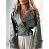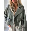 Khaki křivák CHERRY v crop střihu z eko kůže, s páskem v pase a širokou klopou. Krásný kousek, který by Ti neměl v šatníku chybět! Khaki barva je ideální variantou, pokud nechceš nosit pořád jen klasické černé bundičky a navíc tímto originálním kouskem můžeš zvýraznit i jednoduchý outfit. Pokud chceš, aby jsi ho měla trošku volnější, objednej si o číslo větší velikost než standardně nosíš - třeba jako já - já běžně nosím S, ale tento křivák jsem fotila na sobě ve velikosti M :)