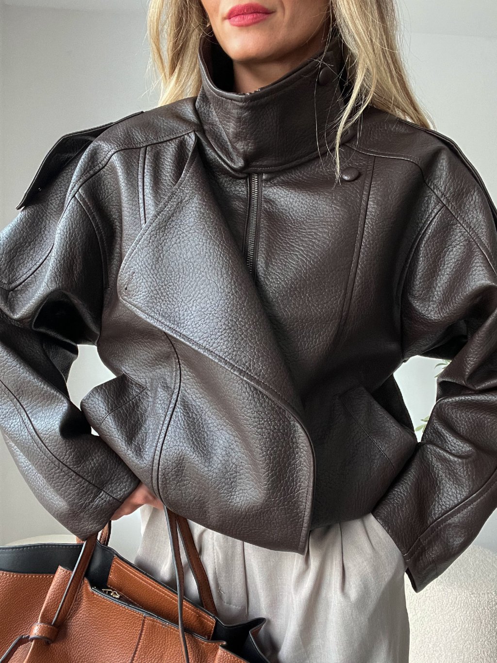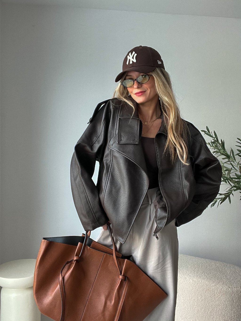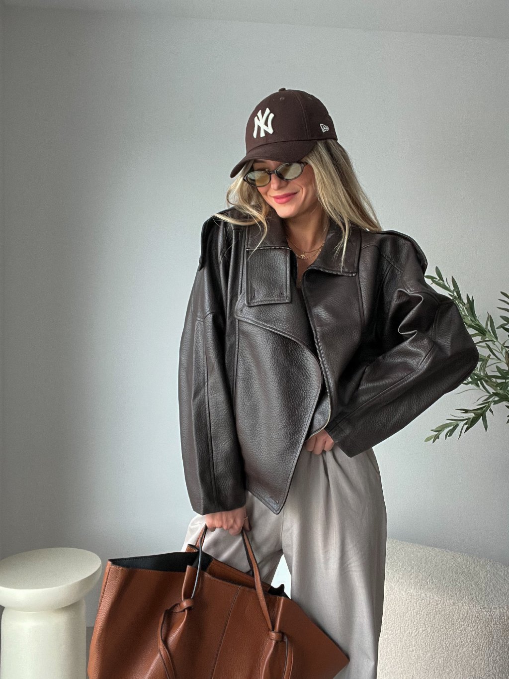 Seznam se s bundou, která umí všechno – oversize koženková bunda MIKA je tvůj nový módní favorit. 🤎
