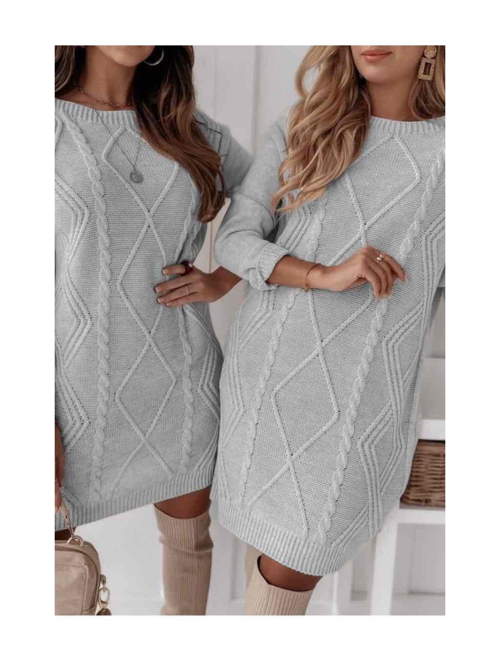 Pletené svetrové šaty GISMO ve světle šedé barvě s krásným výrazným vzorem.