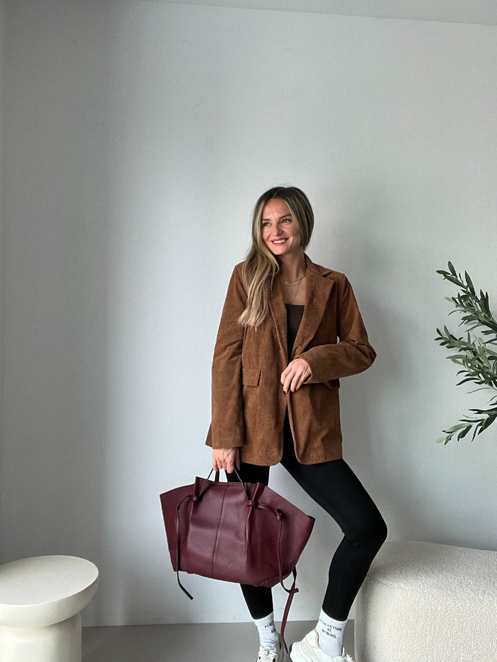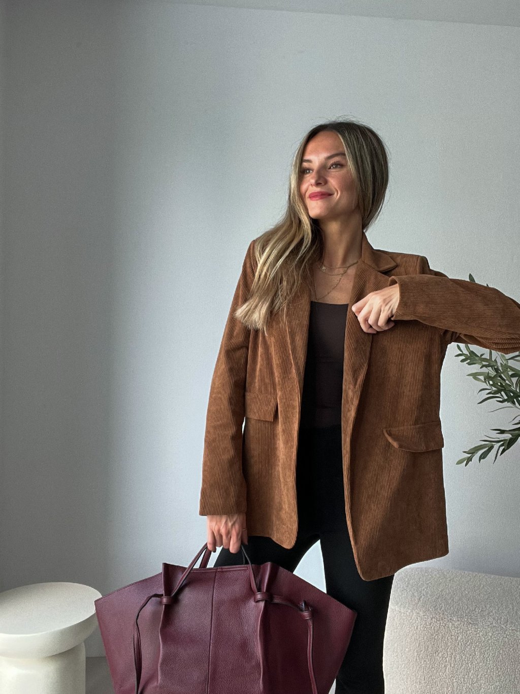 Poznej svoje nové oblíbené sako SELENA – manšestrové v camel barvě! 🤎
