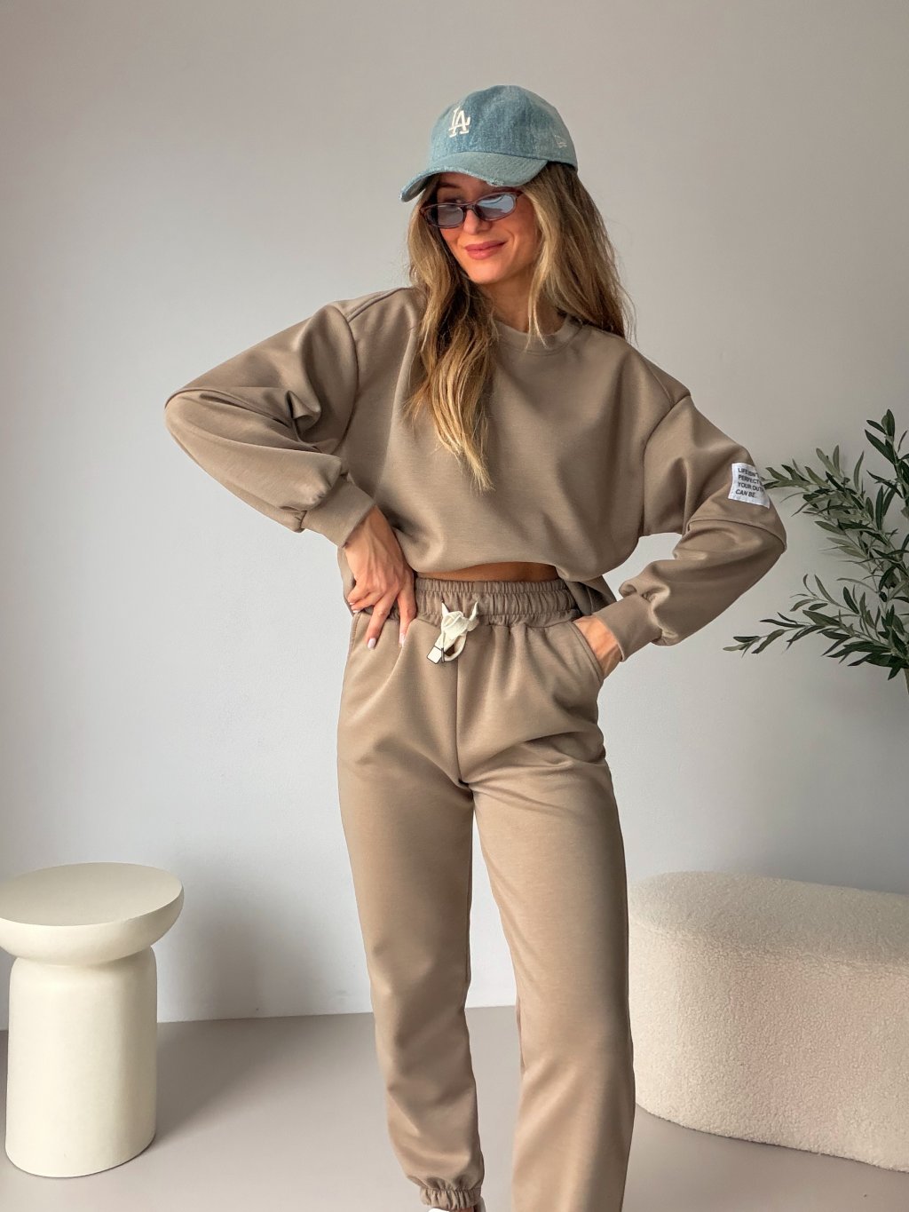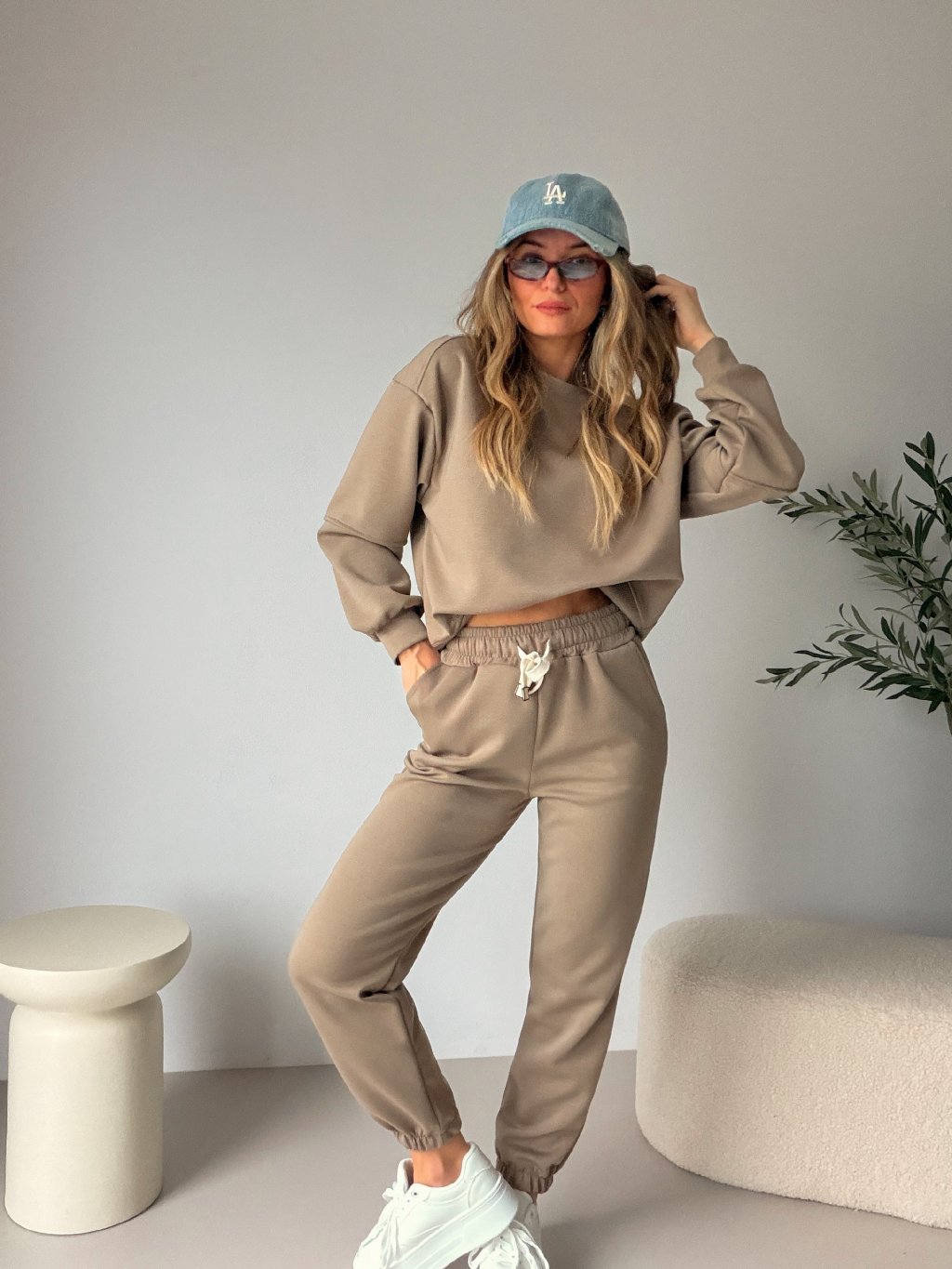 Tepláková souprava LIFE v trendy taupe barvě je přesně ten kousek, ve kterém se budeš cítit pohodlně a zároveň stylově. Kalhoty mají pružný gumový patent v pase, boční kapsy a stahování na šňůrku, takže je krásně přizpůsobíš postavě. Oversize mikina s dlouhým rukávem má v zadní části prodloužený střih, díky kterému vypadá skvěle i lehce zastrčená do kalhot. Ideální set na volné dny, cestování i stylový comfy outfit do města 🖤