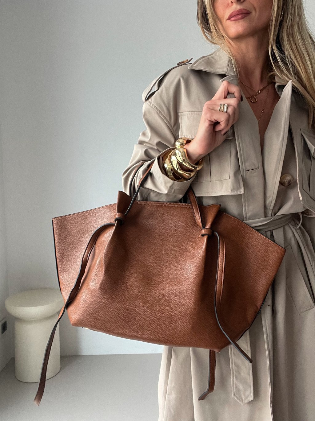 Velká, prostorná a dokonale praktická – všechno, co potřebuješ, se do ní vejde a přitom zůstaneš pořád stylová. Vnitřní taška na zip ti zajistí bezpečí tvých drobností, zatímco elegantní hnědá barva v odstínu camel dodá každému outfitu luxusní nádech, který připomíná kabelky Polene.