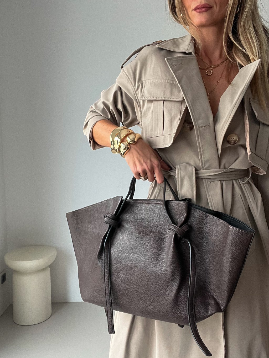 Velká, prostorná a dokonale praktická – všechno, co potřebuješ, se do ní vejde a přitom zůstaneš pořád stylová. Vnitřní taška na zip ti zajistí bezpečí tvých drobností, zatímco tmavě hnědá barva dodá každému outfitu luxusní nádech, který připomíná kabelky Polene.