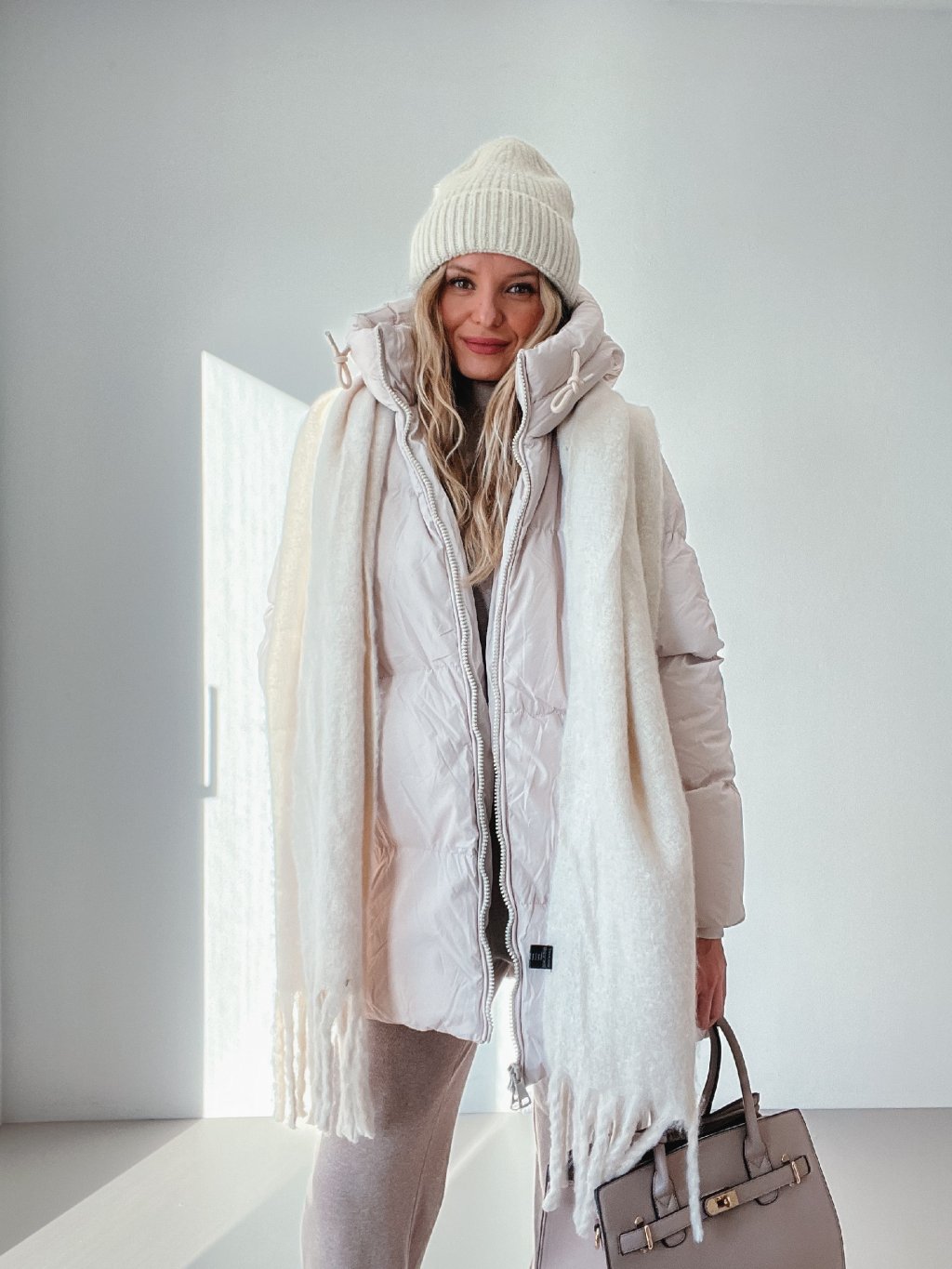 Extra velká, hřejivá šála NOLA, s třásněmi, ve světlé krémové barvě. Krásná šála, která Tě nejen zahřeje, ale také oživí Tvůj outfit.