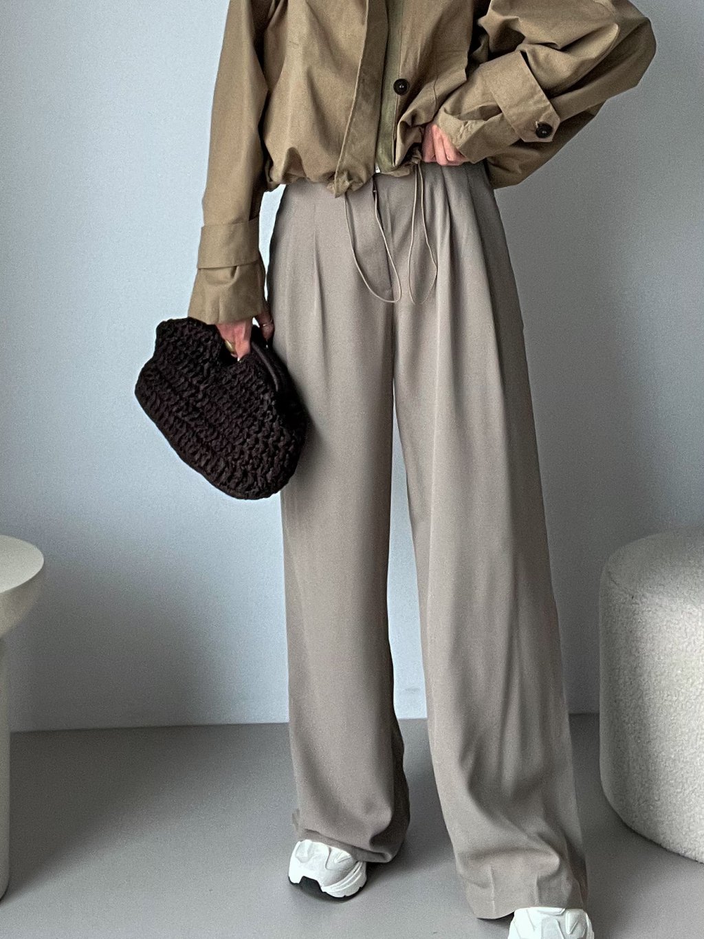 Volné kalhoty ZOE s širokými nohavicemi - taupe barva
