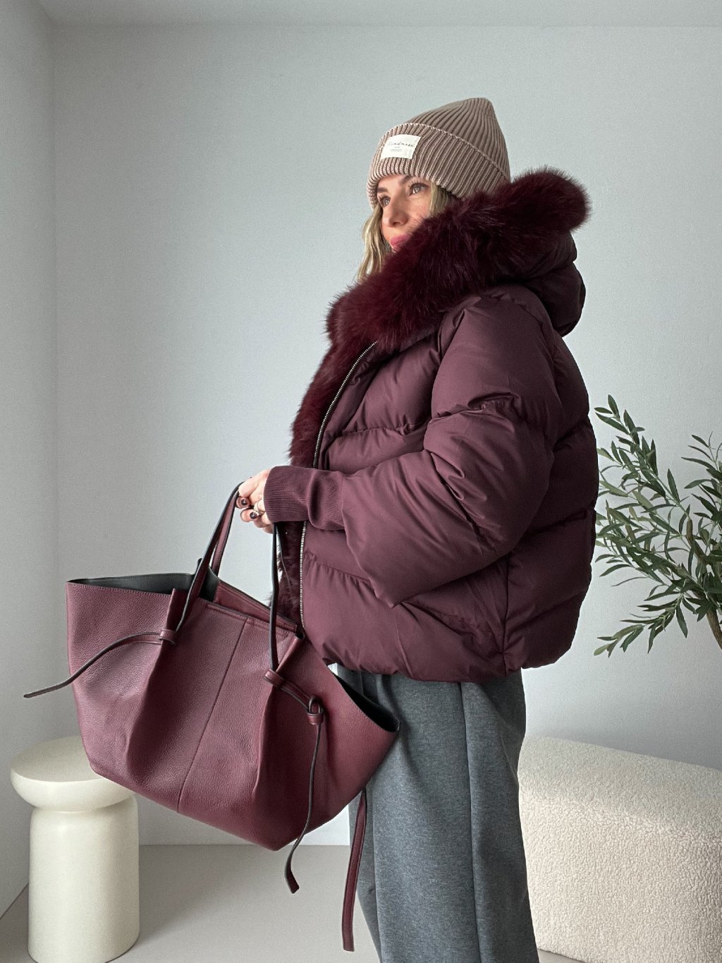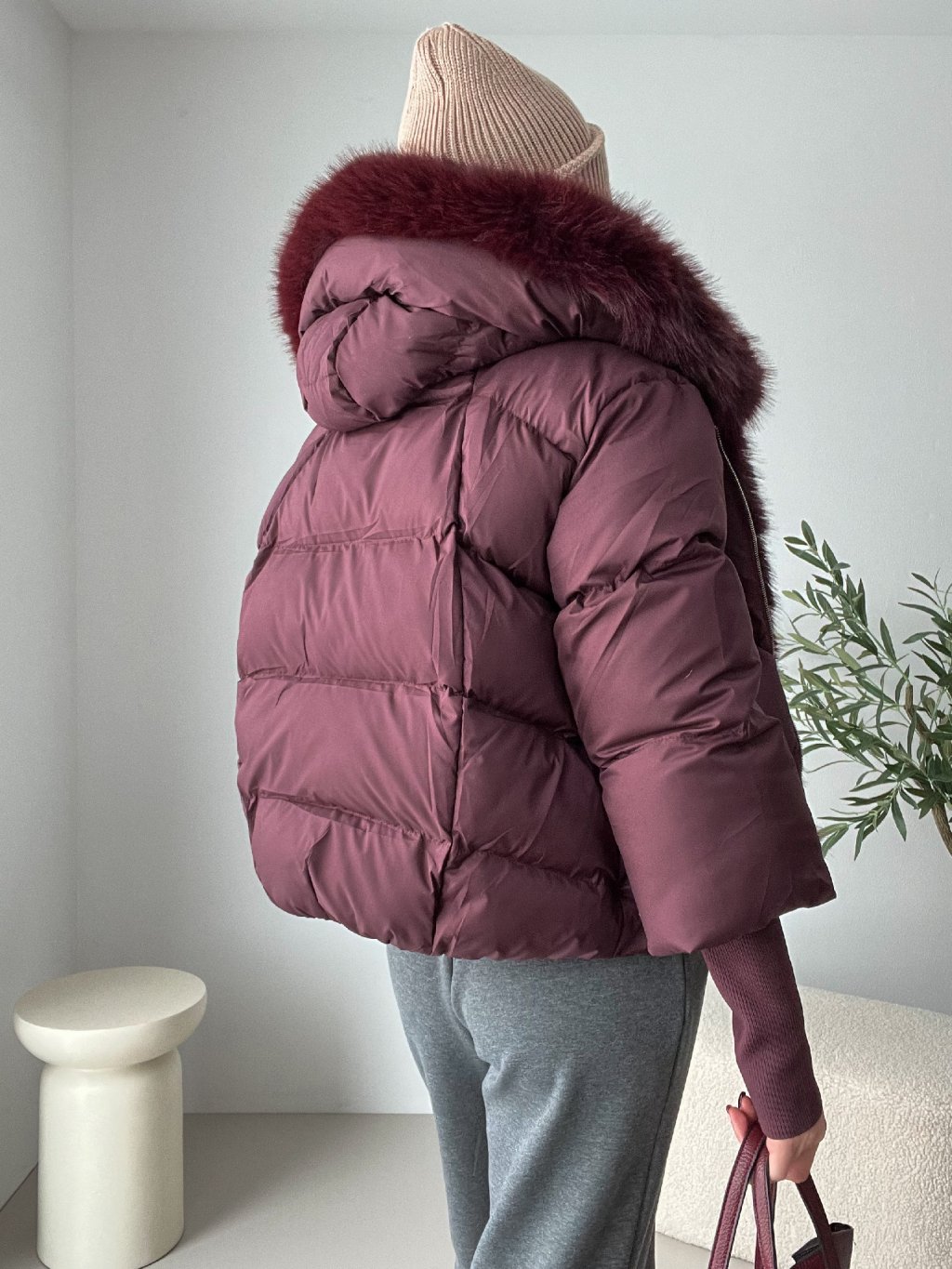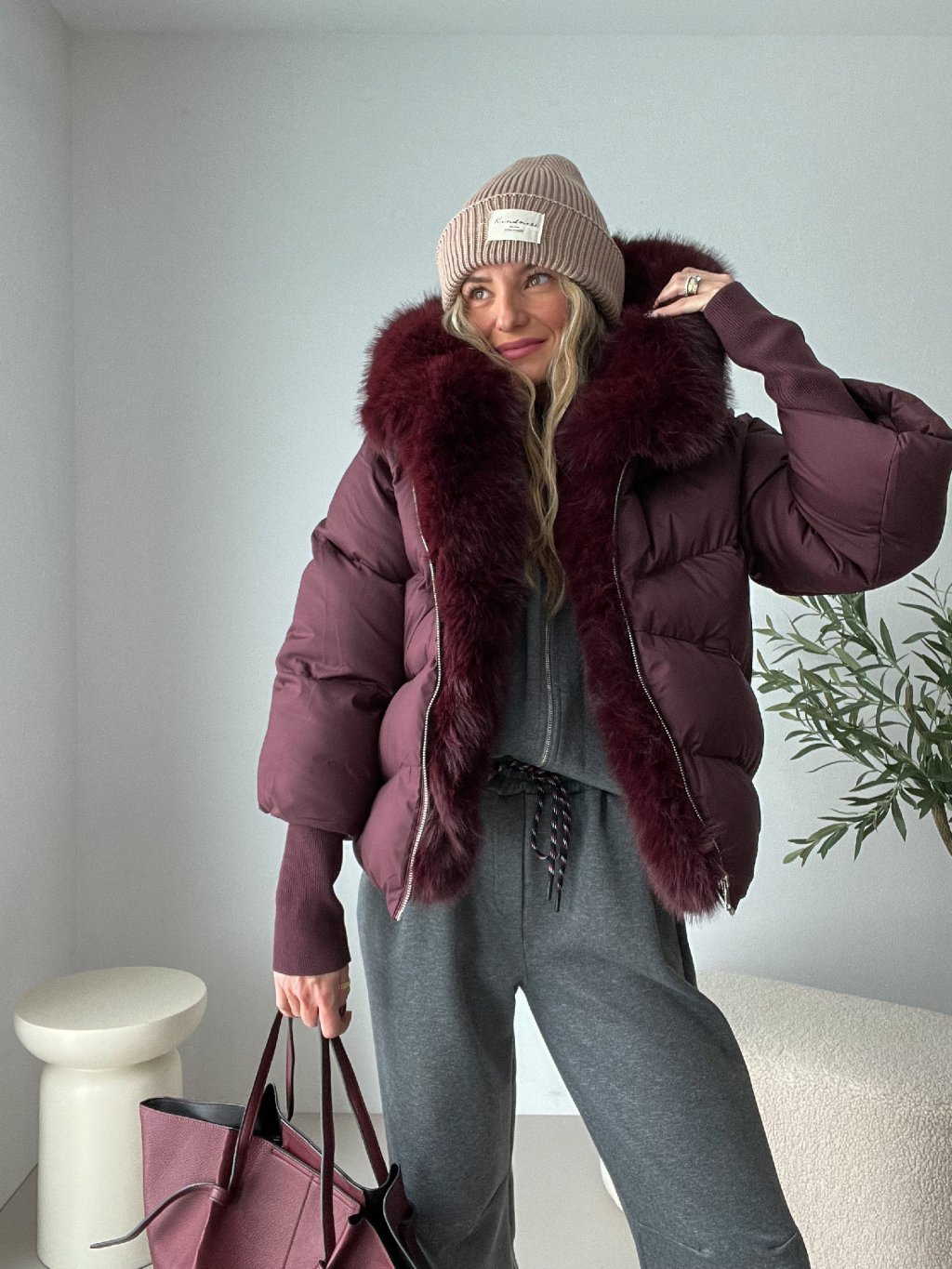 Pohodlí, styl a trocha originality – přesně to je krátká zimní bunda ELLIE v trendy burgundy barvě s kožíškem a kapucí. 🤎